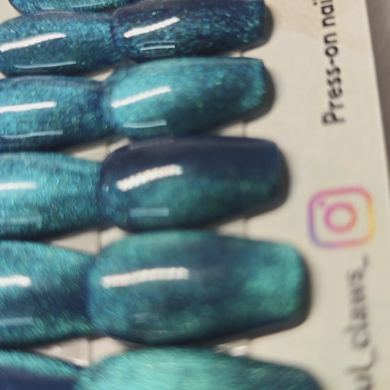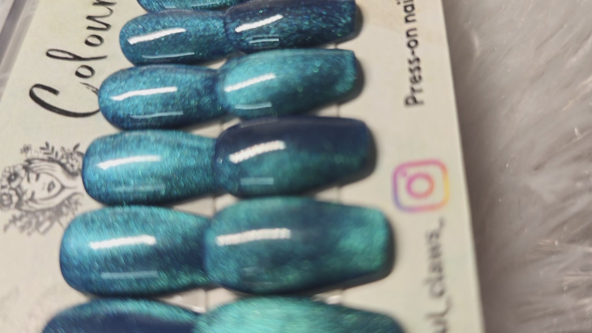 #PressOnNails #BlueCatEye #GlamNails #ColourfulClaws