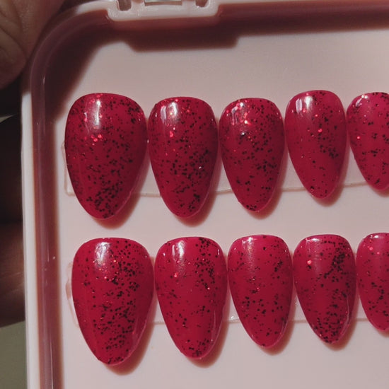 Make a bold statement with our short almond press-on nails in red glitter—vibrant, confident, and easy to wear. Perfect for working women and busy moms who want an instant glam look for parties or special moments. Reusable, salon-like finish in minutes!